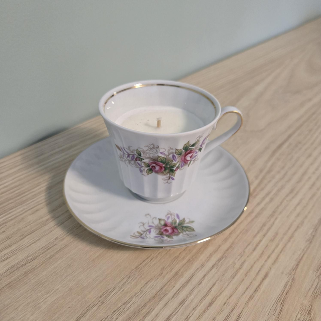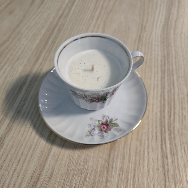 Bougie réalisée dans une ancienne tasse en porcelaine.