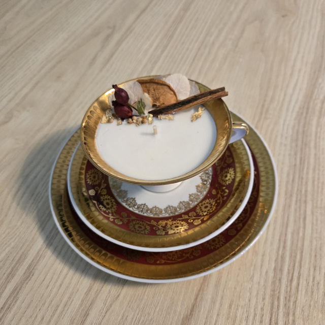 Bougie réalisée dans une ancienne tasse en porcelaine.