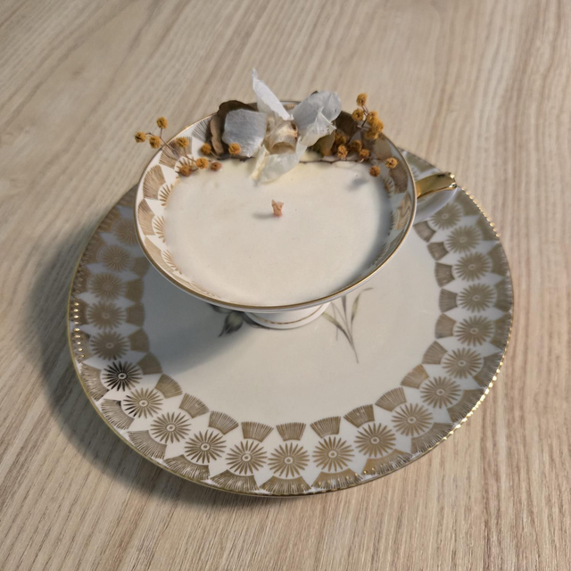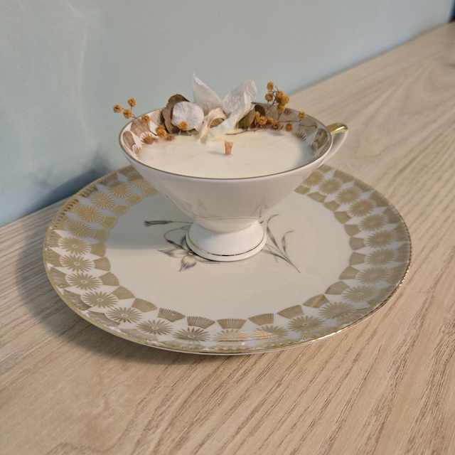 Bougie réalisée dans une ancienne tasse en porcelaine.